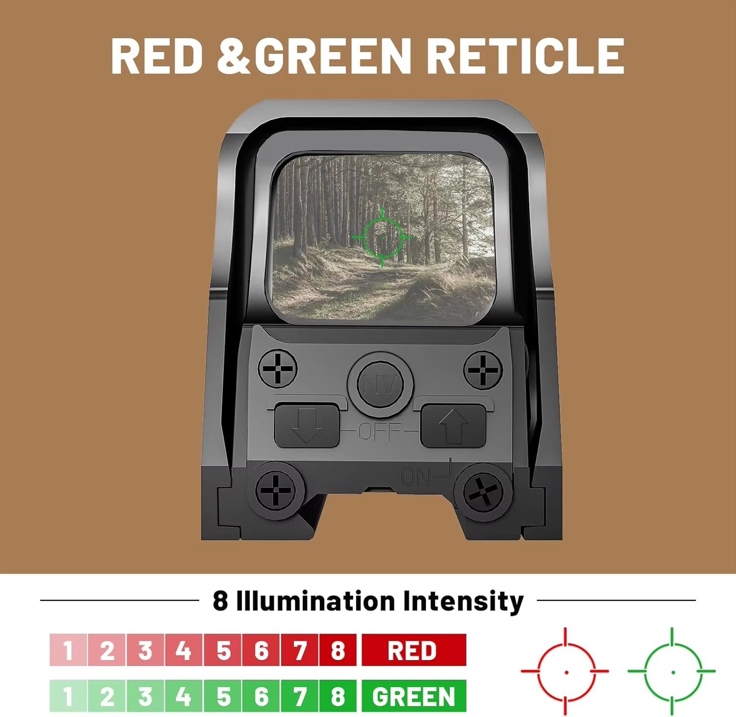The red and green reticle options are clear and easy to switch between, and the brightness adjustment works well in different lighting conditions. The sight feels solid, holds zero after use, and the window size is comfortable for quick target acquisition.