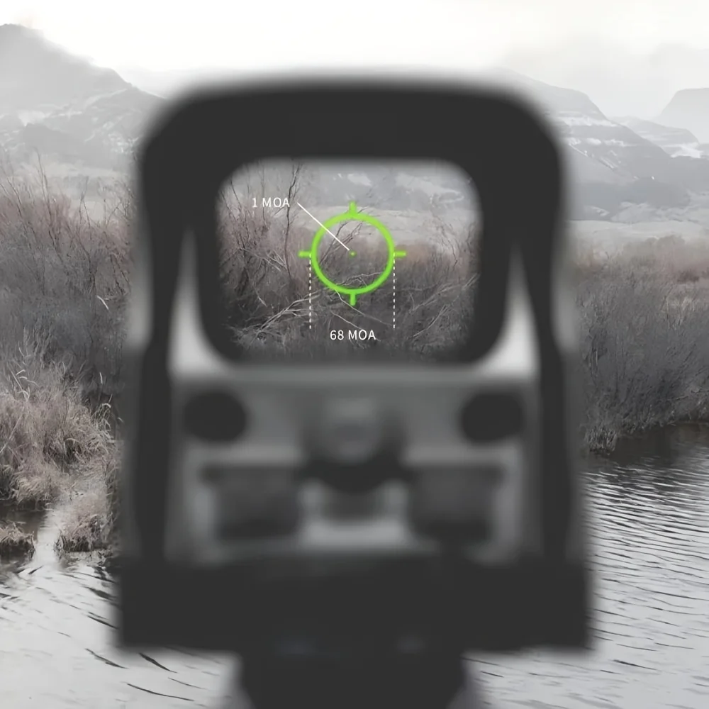 The reticle color can be switched between red and green, giving users flexibility across varying backgrounds and conditions.