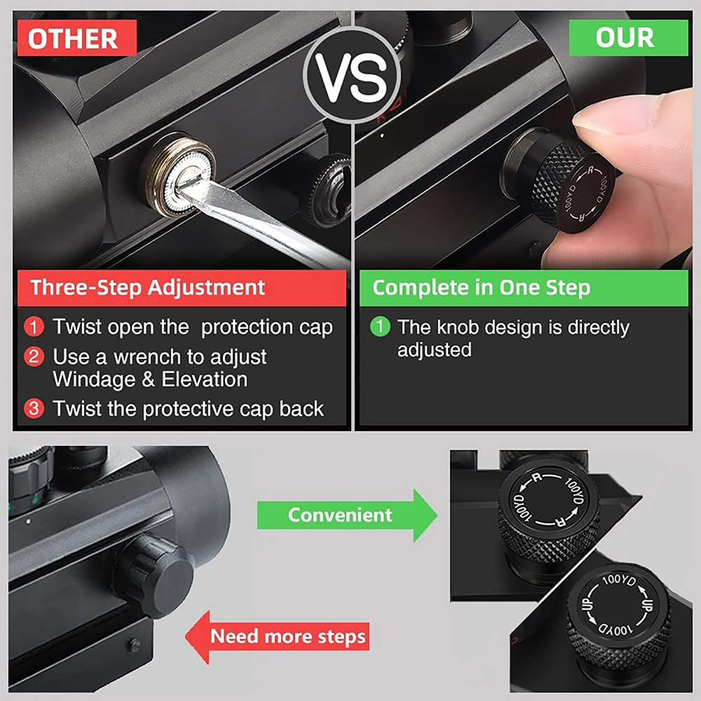 🎯 Red / Green Reticle with Easy Brightness Control