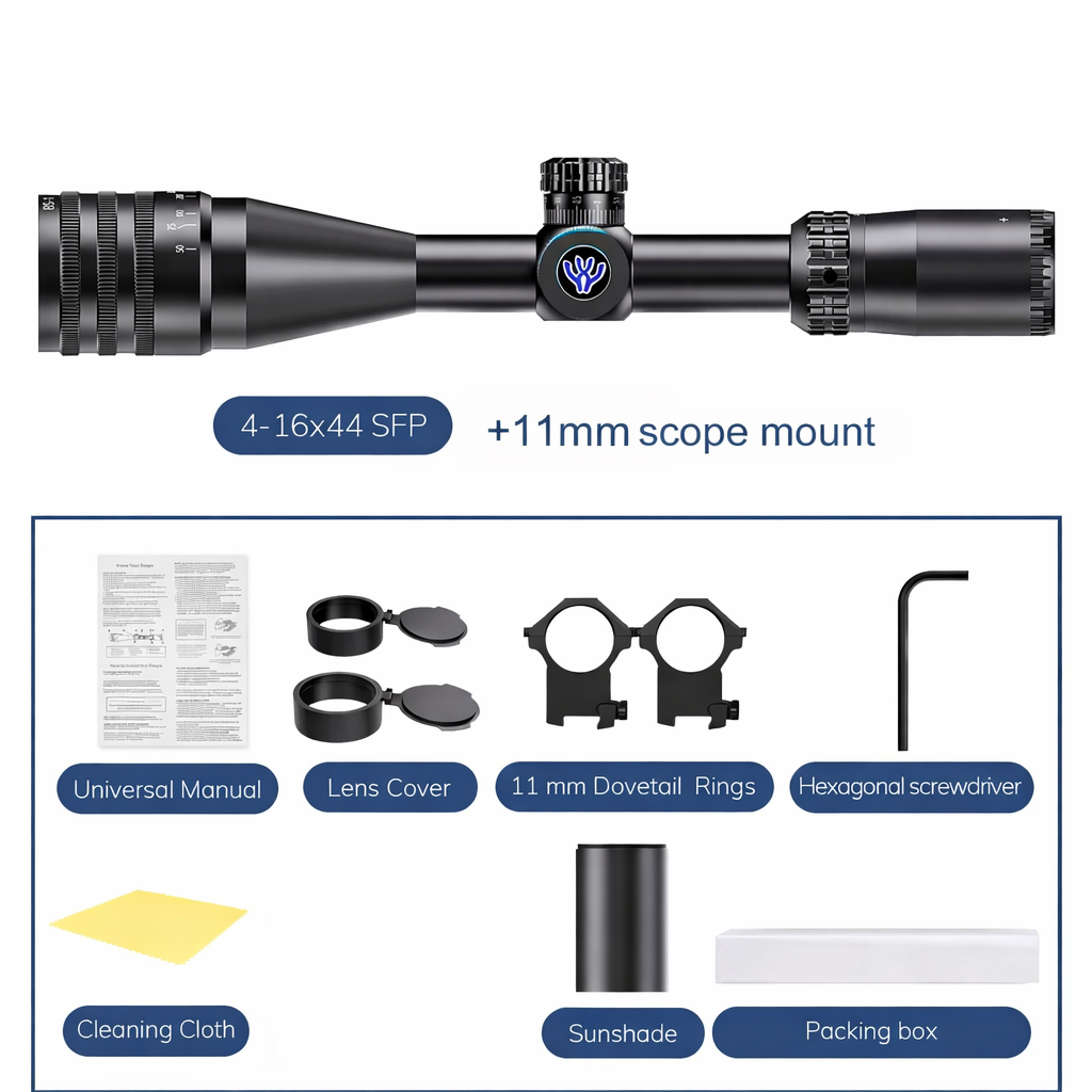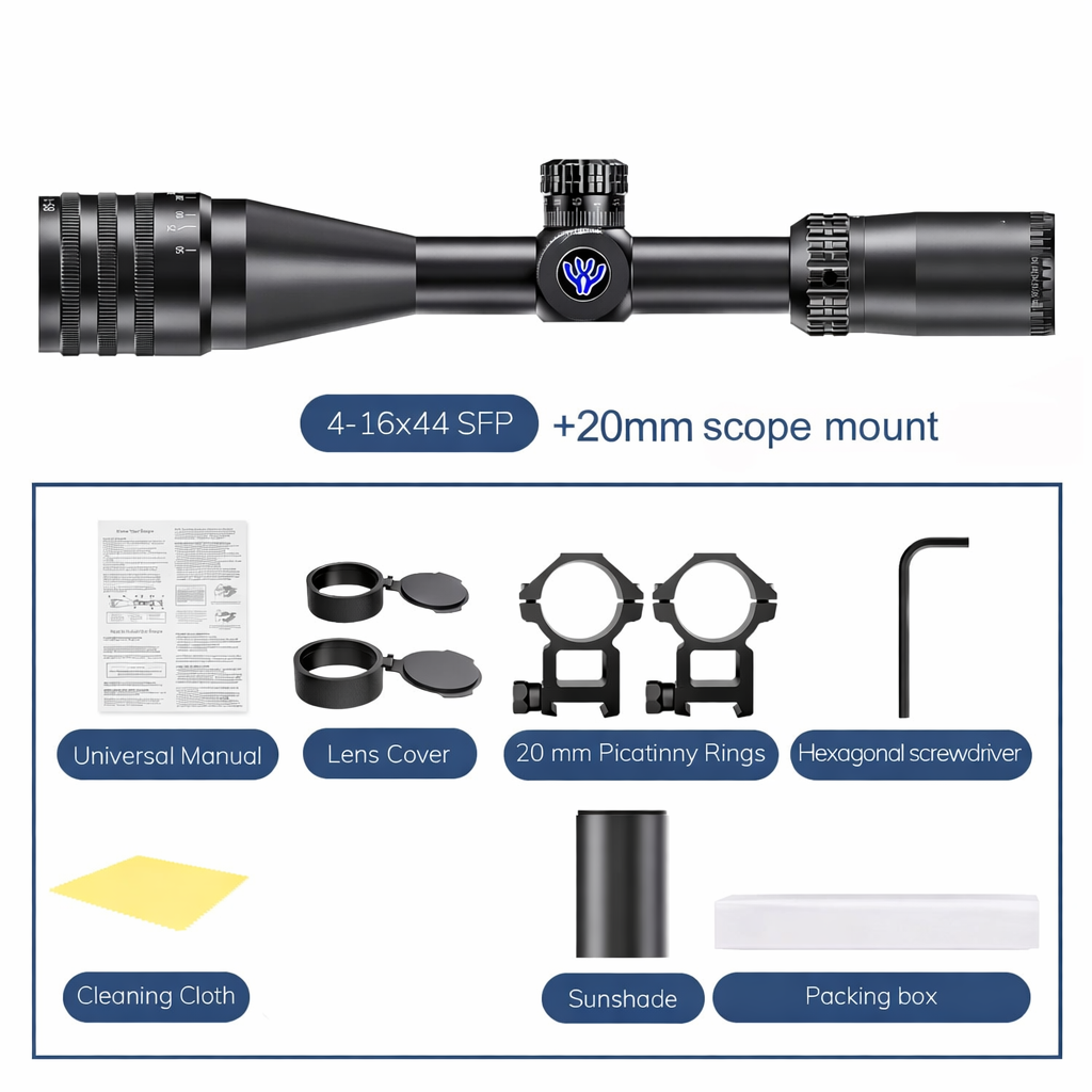 • AKT3 4–16×44 SFP tactical rifle scope delivers flexible 4× to 16× magnification for clearer target acquisition from short-range aiming to extended field observation, making it a strong option for users comparing tactical rifle scopes and a dependable tactical rifle scope for everyday outdoor use